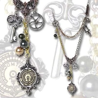 This Alchemy pendant is a flamboyant and flouncing bijouterie for the femme technique, assembled from the flotsam of an eccentric scientist’s household. All pendants are cast and hand-made in fine English pewter, many have additional high quality crystals and components, hand plated or other two-tone finish and come complete with nickel-free chain or other necklace of appropriate length.