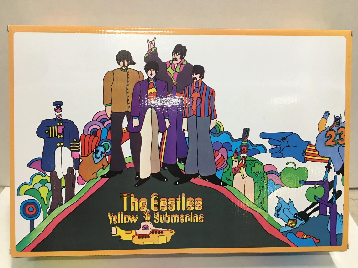 Take a ride to Pepperland, that cheerful music-loving paradise under the sea with this awesome box set of The Beatles Yellow Submarine Band Member Plush! Decorative, cuddly and huggable! John, Paul, George & Ringo stand 9″ tall just as they appear in the the 1968 animated classic. Ages 3+.